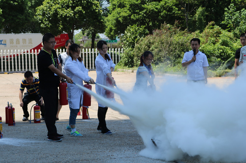 之后,待全體人員在前坪集合完畢,藍教官現場為大家演示了滅火器的使用方法,并指導大家逐一進行實踐演練操作,讓大家很快熟練掌握了干粉滅火器的使用和滅火自救技能。