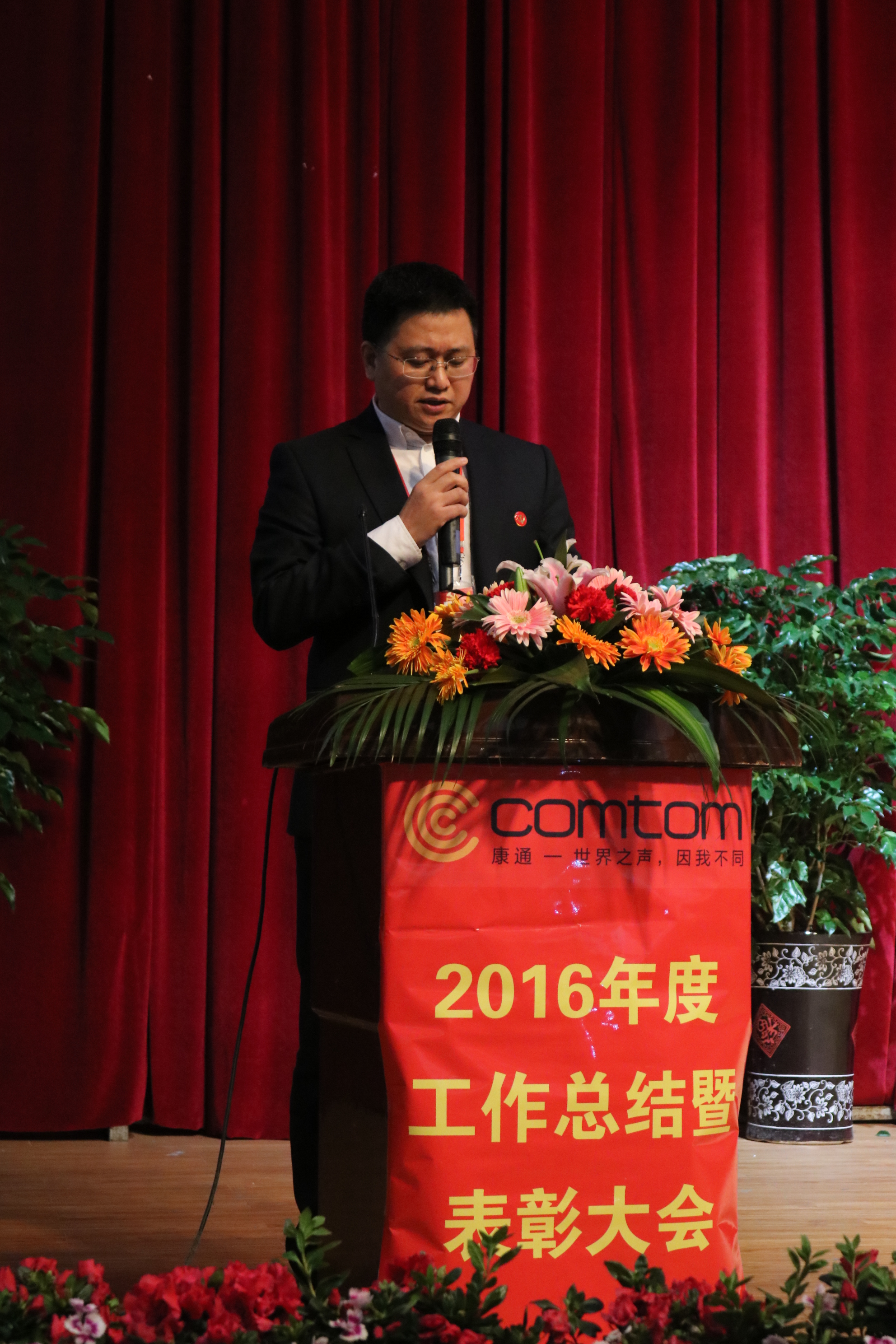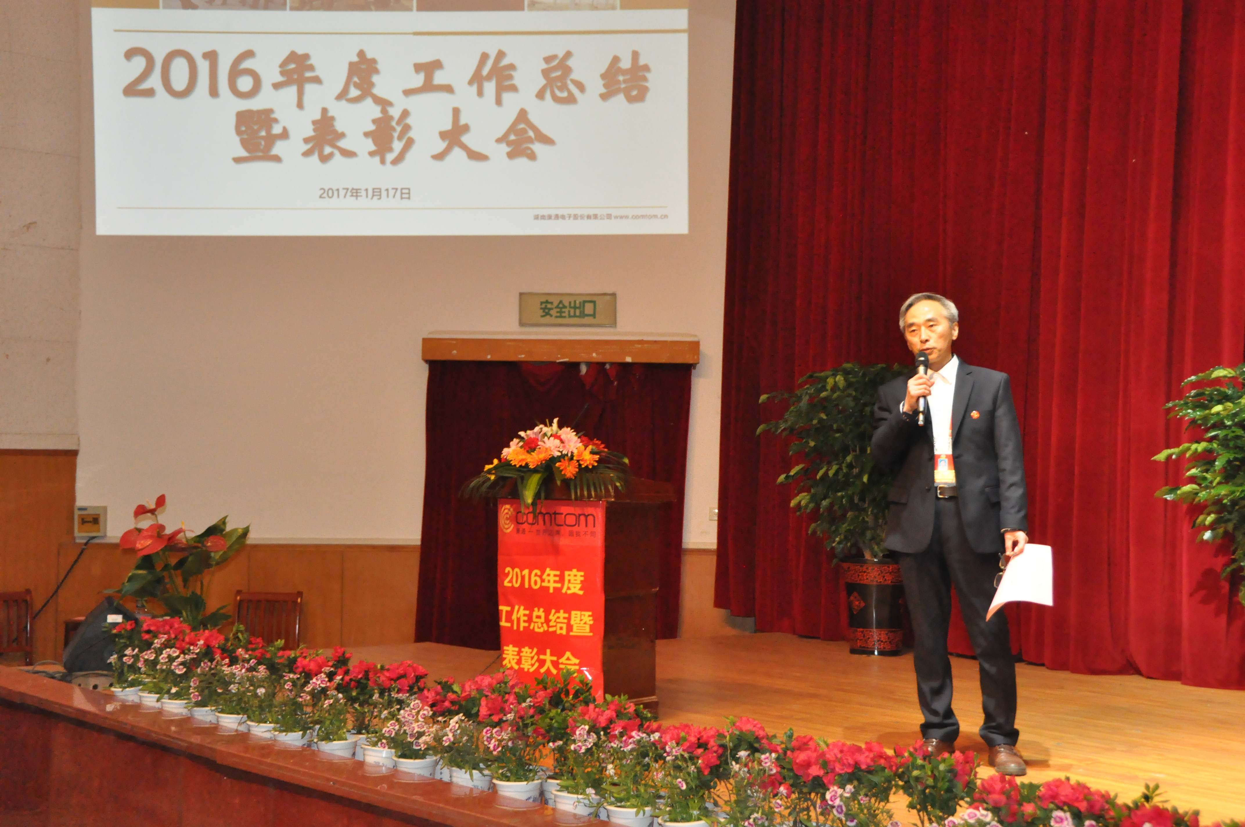 會(huì)上,夏總首先致大會(huì)開場(chǎng)辭,對(duì)共同奮斗的康通兄弟姐妹們表達(dá)了新年的慰問以及祝福,感謝大家一年來的辛勤努力和拼搏。他回顧總結(jié)了2016年公司完成的重點(diǎn)工作和取得的成績(jī)——公司喬遷隆平園區(qū)、成功掛牌新三板、新城計(jì)劃的召開、安徽省應(yīng)急廣播試點(diǎn)建設(shè)現(xiàn)場(chǎng)會(huì)圓滿舉行等成績(jī),希望大家在新的一年里,再接再厲,一起努力創(chuàng)造更加輝煌的成績(jī)。