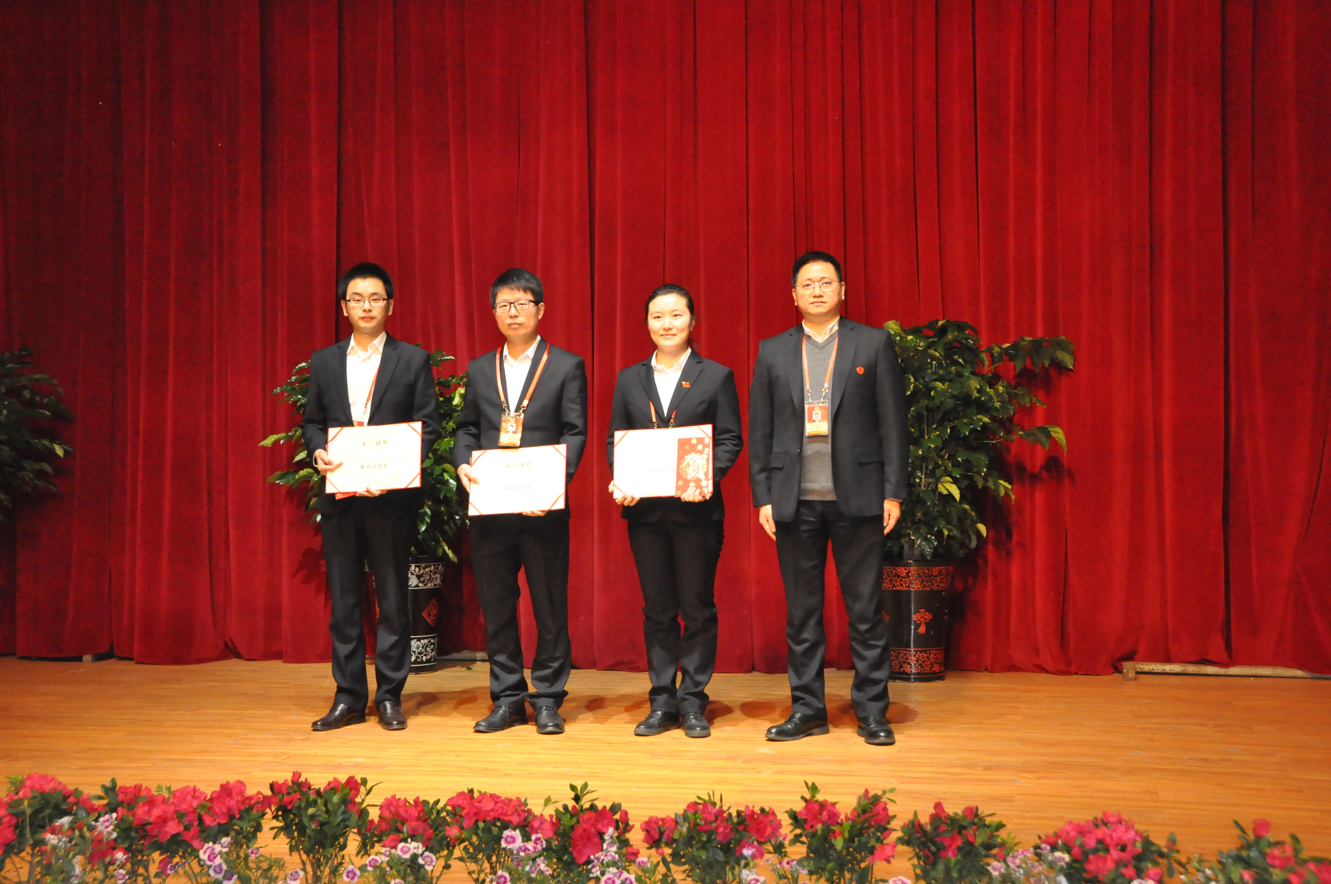 財(cái)務(wù)副總劉茂彬向2016年度康通服務(wù)保障獎(jiǎng)獲獎(jiǎng)員工頒獎(jiǎng)并合影留念