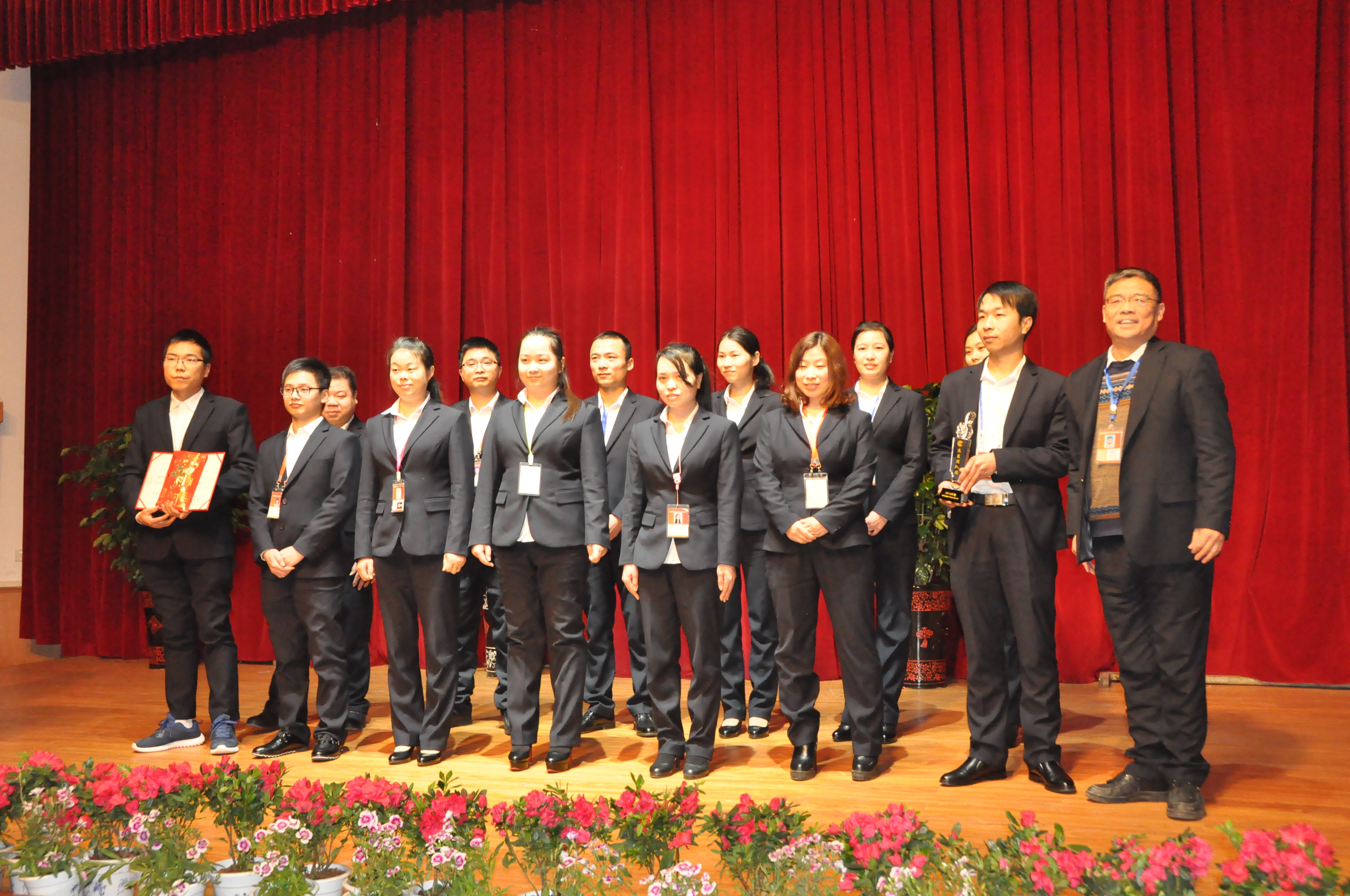 質(zhì)量副總楊劉生向2016年度康通杰出團(tuán)隊(duì)獎(jiǎng)獲獎(jiǎng)部門貼片車間團(tuán)隊(duì)頒獎(jiǎng)并合影留念