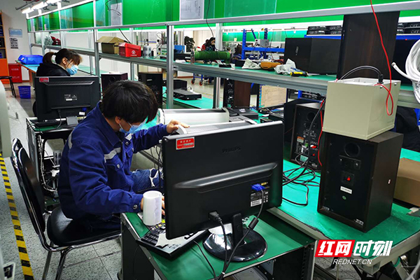 “這是我過得最忙碌的一個年!”音頻設備測試員石銀一邊說著,一邊也沒停下手里的工作,“2月3號接到公司的通知,我就立刻從寧鄉趕回來?!币咔榉揽刂赜谔┥剑瑧睆V播設備需求激增。為保障產品供應和技術服務,康通電子第一時間申請復工復產。
