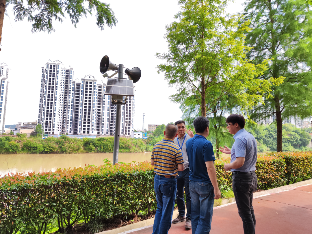 隨后,在解說員的帶領下,與會嘉賓前往汨羅江邊,親身體驗應急廣播一江兩岸防溺水預警應用,并在工作人員的操作下,連接廣場戶外LED大屏,體驗大屏應急信息聯動發布的實際應用。