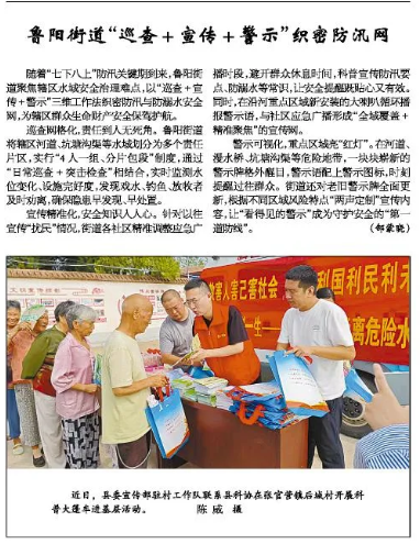 隨著“七下八上”防汛關鍵期到來,魯陽街道聚焦轄區水域安全治理難點,以“巡查+宣傳+警示"三維工作法織密防汛與防溺水安全網,為轄區群眾生命財產安全保駕護航。