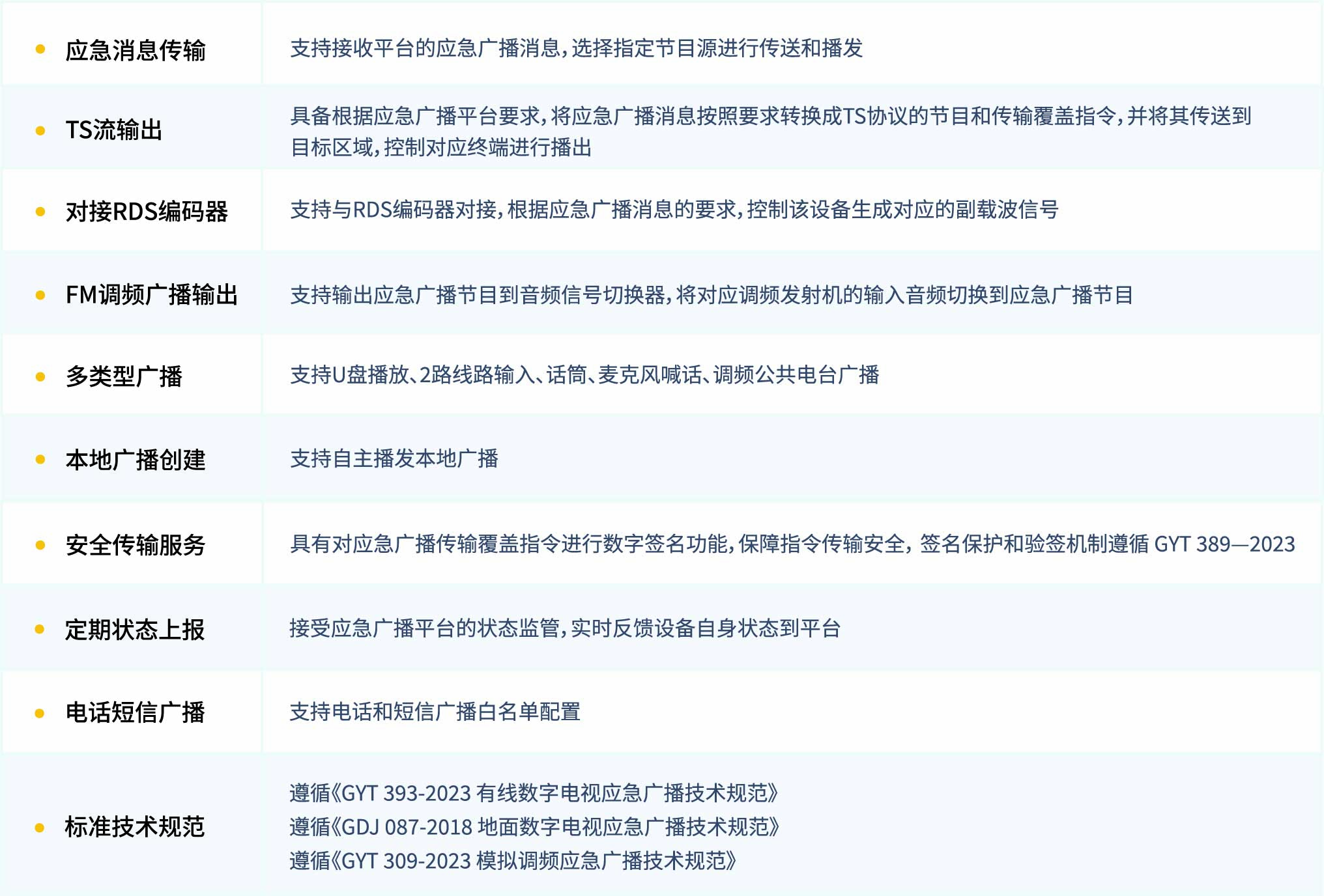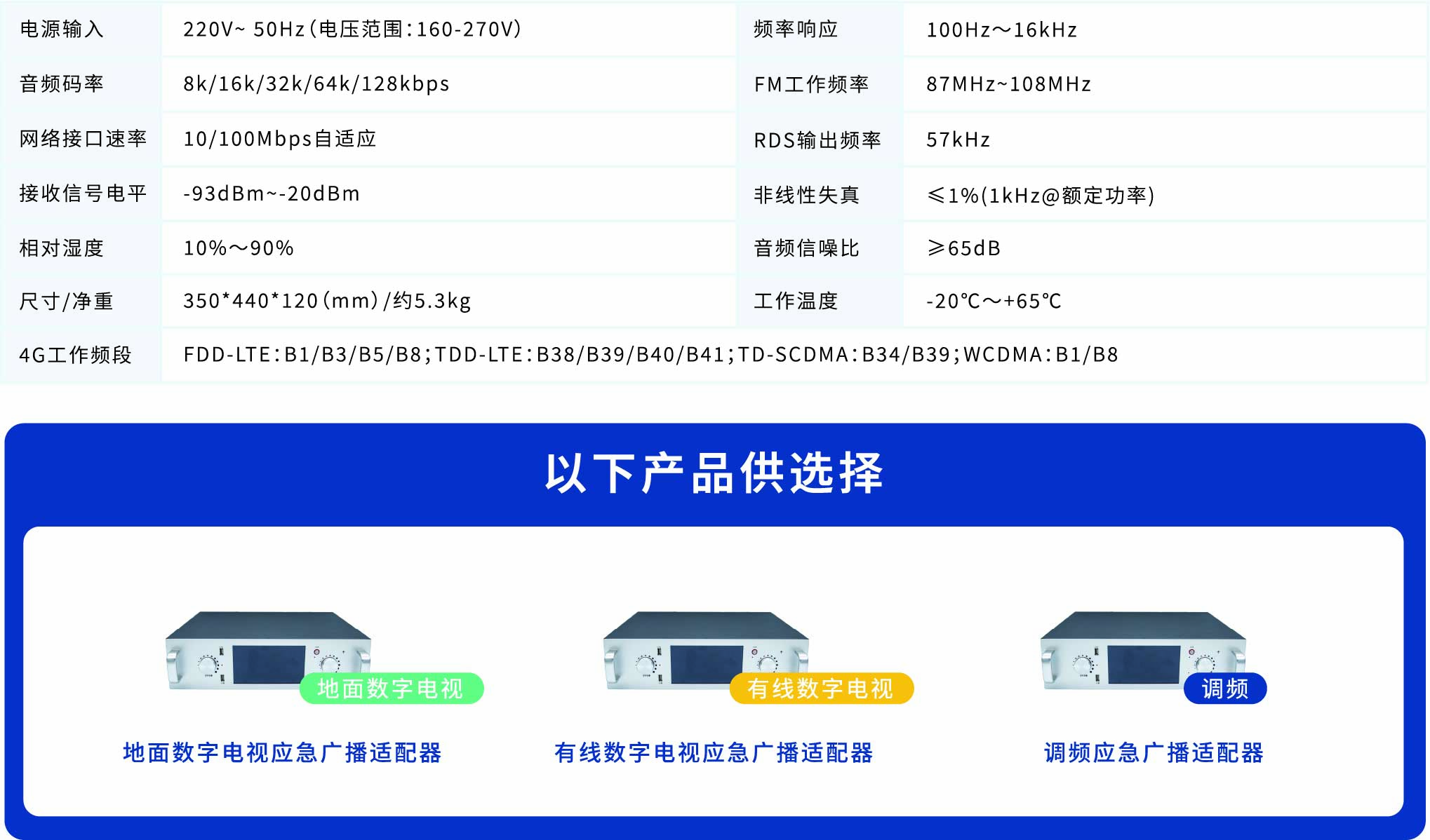 地面數(shù)字電視/有線數(shù)字電視/調(diào)頻應急廣播適配器是應急廣播解決方案中的重要產(chǎn)品,主要部署在發(fā)射機房, 用于接收上級廣播信號然后將指令及音頻分發(fā)到目標終端設備。支持接收應急廣播平臺的信息,經(jīng)過驗簽后轉(zhuǎn)化為相應的控制指令,通過地面數(shù)字電視、有線數(shù)字電視、調(diào)頻廣播傳輸?shù)韧ǖ雷罱K控制終端設備進行廣播。同時帶有線路輸入,麥克風喊話,U盤播放,調(diào)頻公共電臺本地廣播等功能。